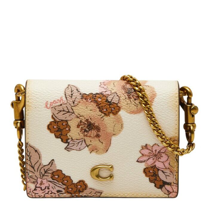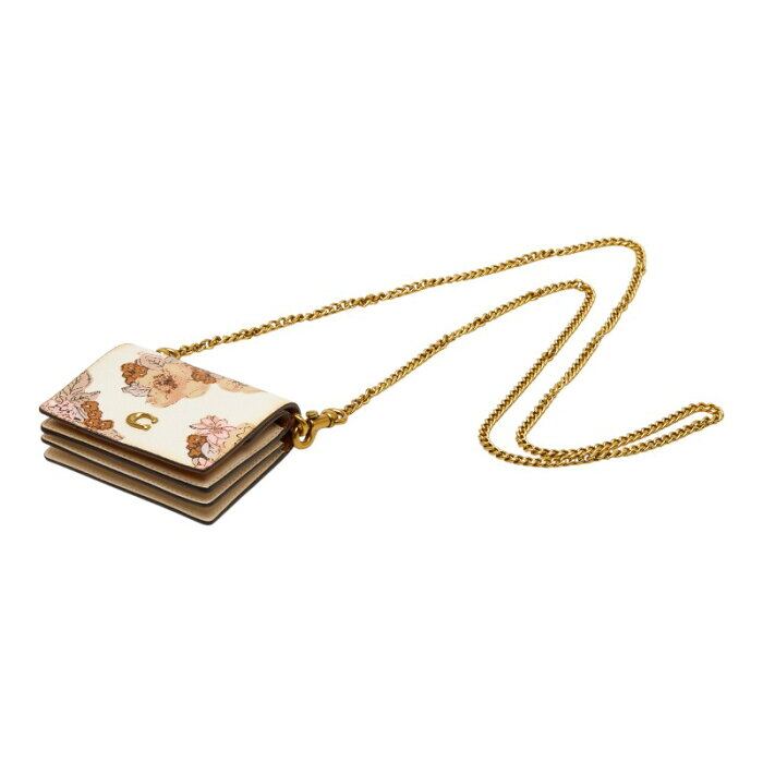コーチ フラワー ミニ チェーン ウォレット マルチカラー ベージュ レザー レディース COACH 【中古】