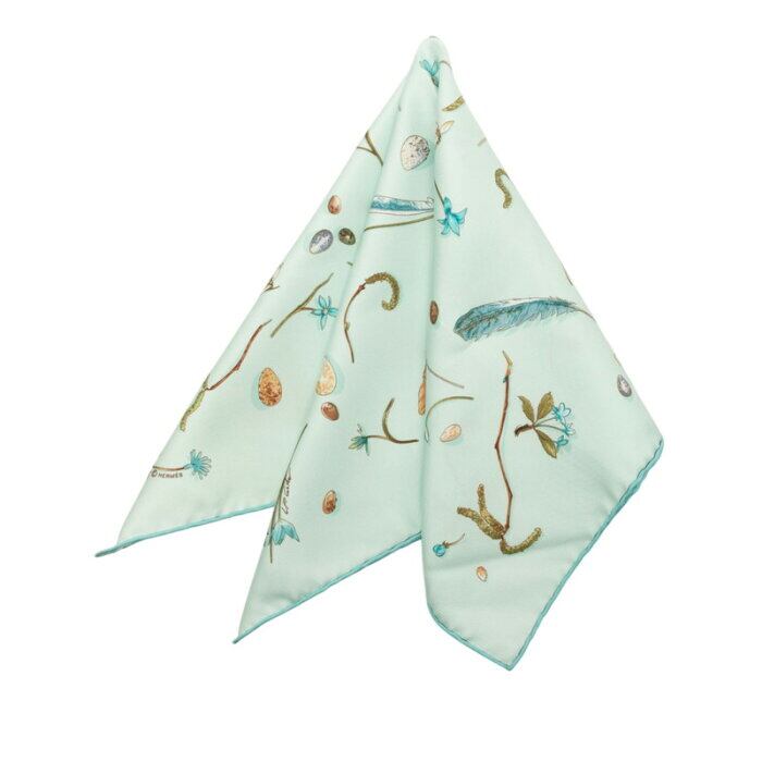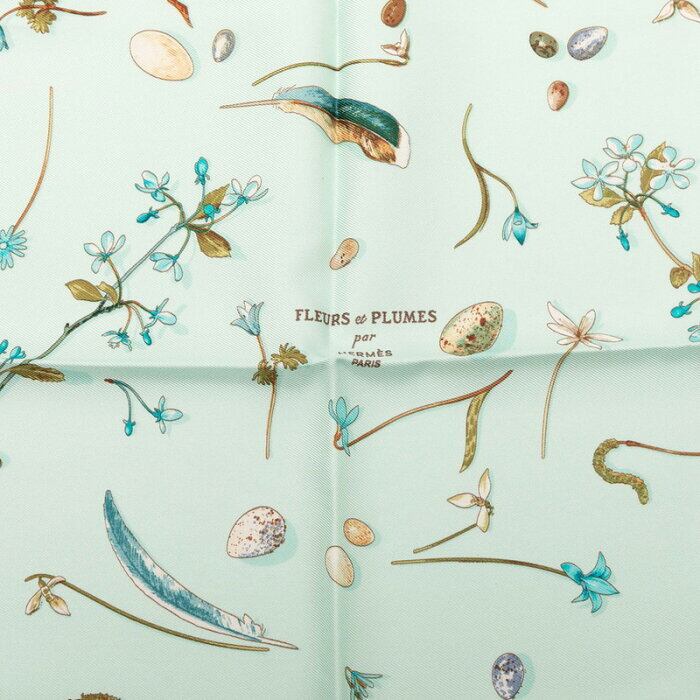 エルメス カレ45 プチカレ FLEURS et PLUMES スカーフ ライトブルー マルチカラー シルク レディース HERMES 【中古】