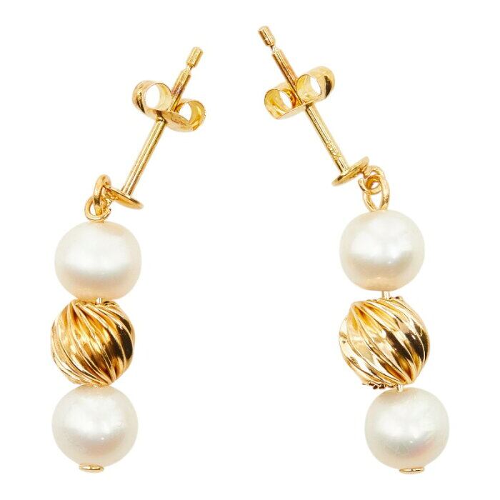 真珠 K18YG イエローゴールド 淡水パール4.7~5.0mm ピアス レディース 【中古】