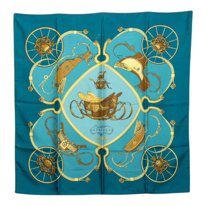 エルメス カレ90 SPRINGS スプリングス 馬車柄 スカーフ グリーン マルチカラー シルク レディース HERMES 【中古】