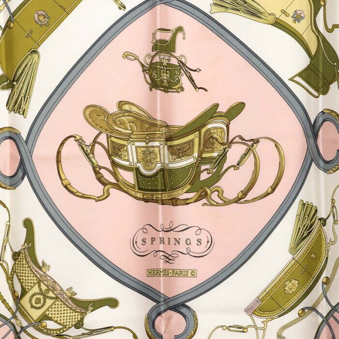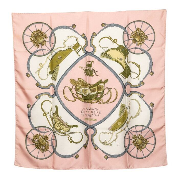エルメス カレ90 SPRINGS スプリングス 馬車柄 スカーフ ピンク マルチカラー シルク レディース HERMES 【中古】