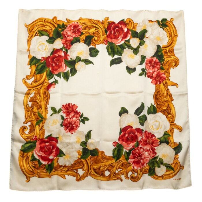 シャネル フラワー 花柄 スカーフ ホワイト マルチカラー シルク レディース CHANEL 【中古】