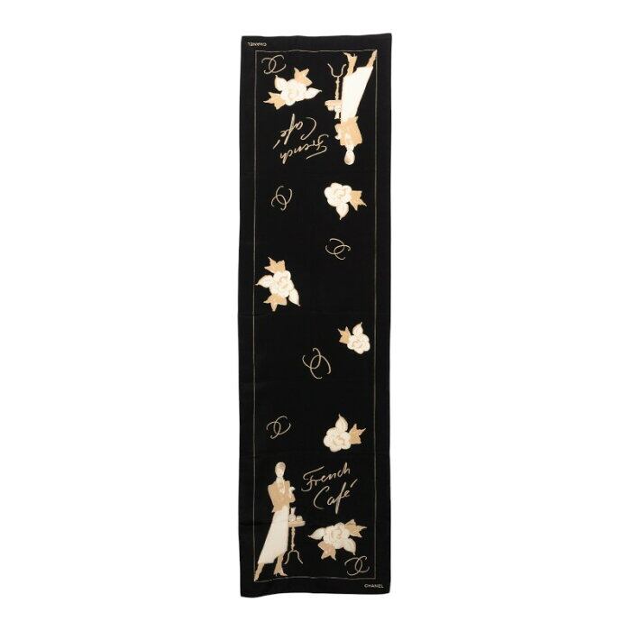 シャネル ココマーク 総柄 スカーフ ブラック ベージュ シルク レディース CHANEL 【中古】