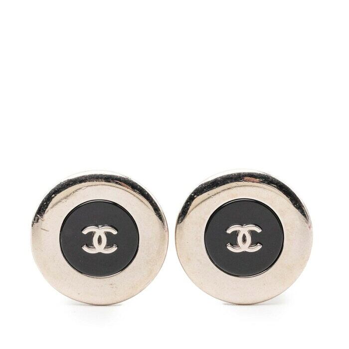 シャネル ココマーク ヴィンテージ ラウンド イヤリング 97A シルバー ブラック 黒 メタル カラーストーン レディース CHANEL 【中古】