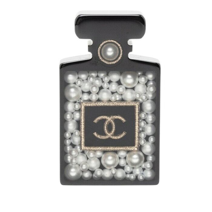 シャネル ココマーク 香水瓶 パフューム ボトル モチーフ ブローチ ブラック ホワイト ゴールド プラスチック メッキ レディース CHANEL 【中古】