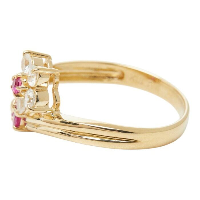 K18YG イエローゴールド ホワイトサファイア ルビー フラワーモチーフ リング 指輪 レディース 11号 【中古】