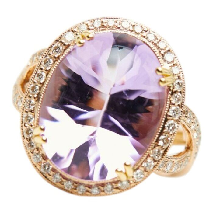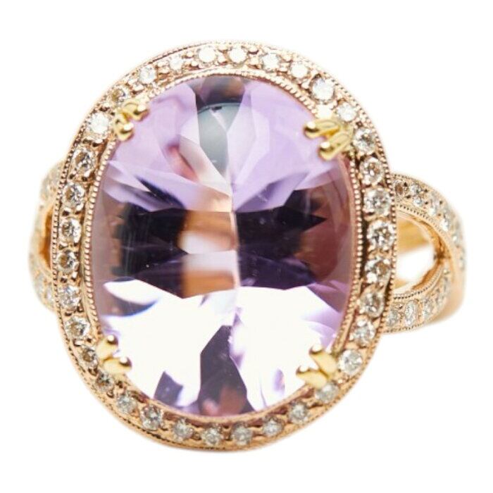 K18PG ピンクゴールド アメジスト10.169ct ダイヤ0.448ct リング 指輪 レディース 12号 【中古】