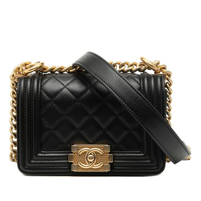 シャネル ボーイシャネル ココマーク マトラッセ 斜め掛け チェーン ショルダーバッグ ブラック ラムスキン レディース CHANEL 【中古】