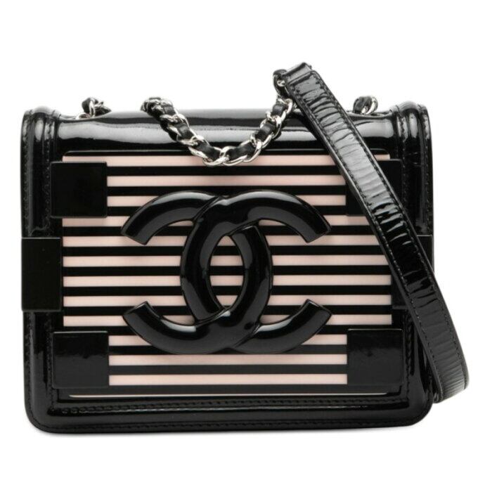 シャネル ココマーク レゴボーイ チェーンショルダーバッグ ブラック ピンク パテントレザー プラスチック レディース CHANEL 【中古】