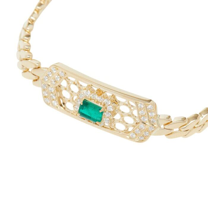 K18YG イエローゴールド エメラルド0.62ct ダイヤ0.38ct ブレスレット レディース 【中古】