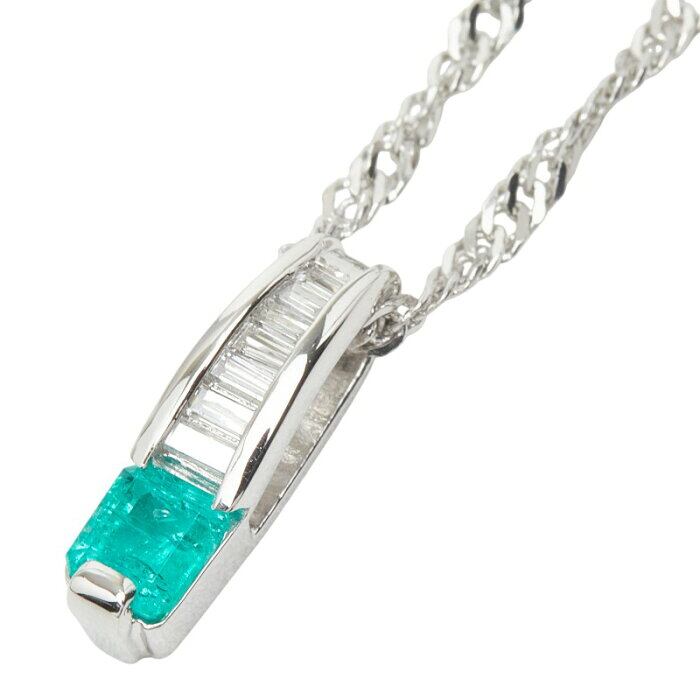 Pt900 プラチナ Pt850 プラチナ エメラルド 0.39ct ダイヤ0.22ct ペンダント ネックレス レディース 【中古】