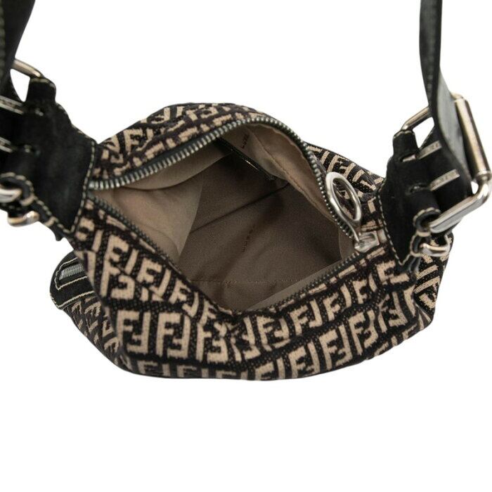 フェンディ ズッキーノ ショルダーバッグ ブラック ベージュ キャンバス レザー スウェード レディース FENDI 【中古】