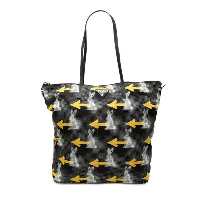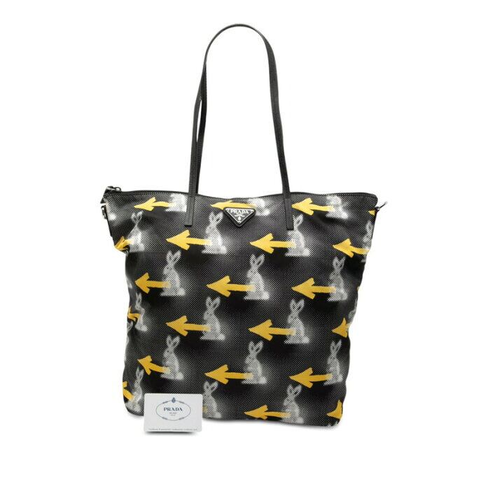 プラダ 三角ロゴプレート うさぎ ラビット アロー トートバッグ 1BG189 ブラック マルチカラー ナイロン サフィアーノレザー レディース PRADA 【中古】