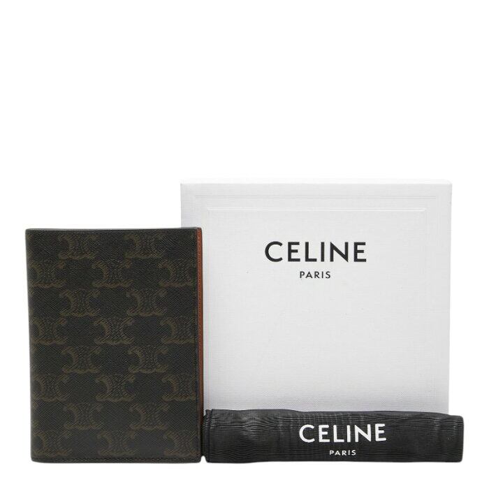 セリーヌ トリオン パスポートケース ブラック ブラウン PVC レザー レディース CELINE 【中古】