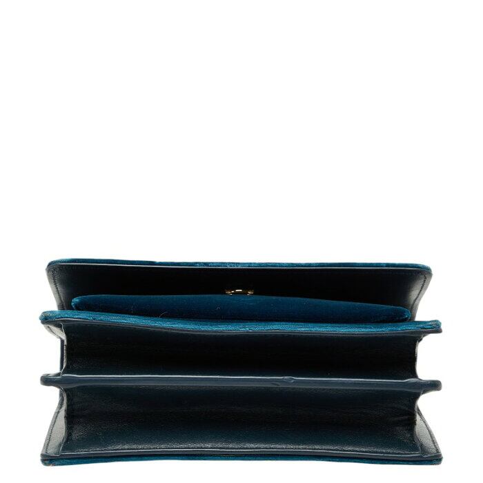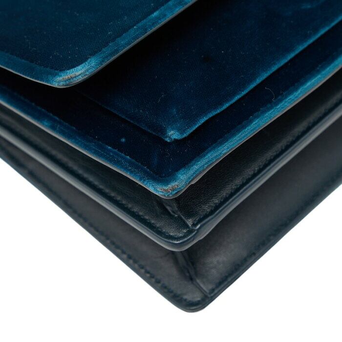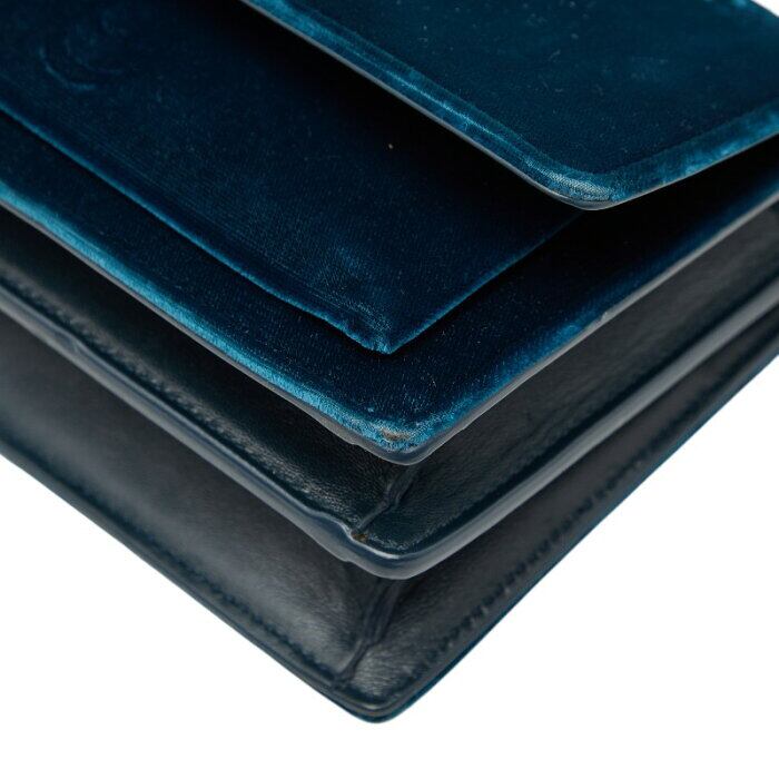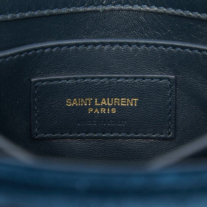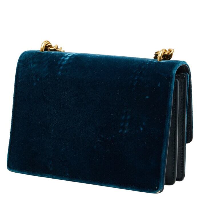 サンローラン YSLロゴ チェーン ショルダーバッグ ブルー ゴールド ベロア レザー レディース SAINT LAURENT 【中古】