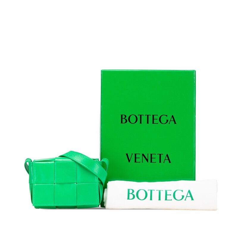 ボッテガヴェネタ マキシイントレチャート キャンディ カセット 斜め掛け ショルダーバッグ 667048 パラキート グリーン レザー レディース BOTTEGAVENETA 【中古】