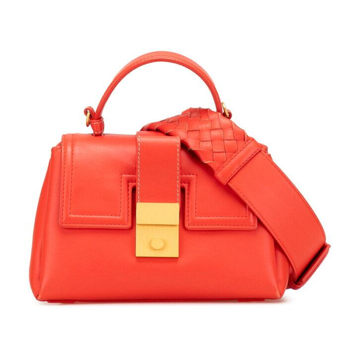 ボッテガヴェネタ イントレチャート ピアッツァ スモール ハンドバッグ ショルダーバッグ 2WAY レッド オレンジ レザー レディース BOTTEGAVENETA 【中古】