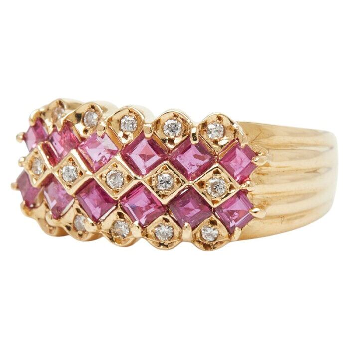 K18YG イエローゴールド ルビー ダイヤ リング 指輪 レディース 10号 【中古】