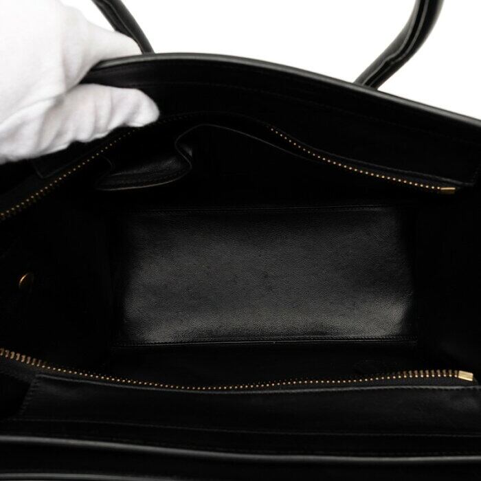 セリーヌ ラゲージ マイクロショッパー トリコロール ハンドバッグ ベージュ ブラック レッド キャンバス レザー レディース CELINE 【中古】