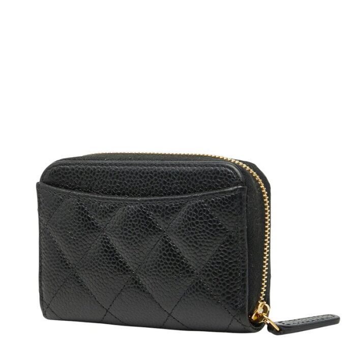 シャネル ココマーク マトラッセ クラシック ジップ コインパース コインケース 小銭入れ AP0216 ブラック キャビアスキン レディース CHANEL 【中古】