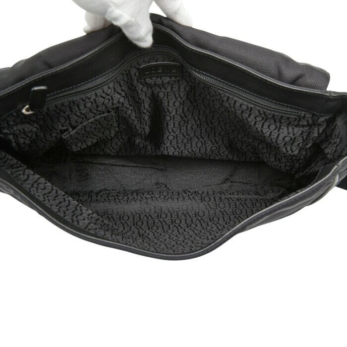 ロエベ ロゴ ショルダーバッグ メッセンジャーバッグ ブラック ナイロン レザー レディース LOEWE 【中古】