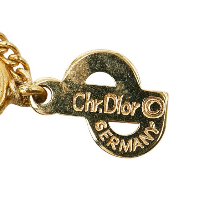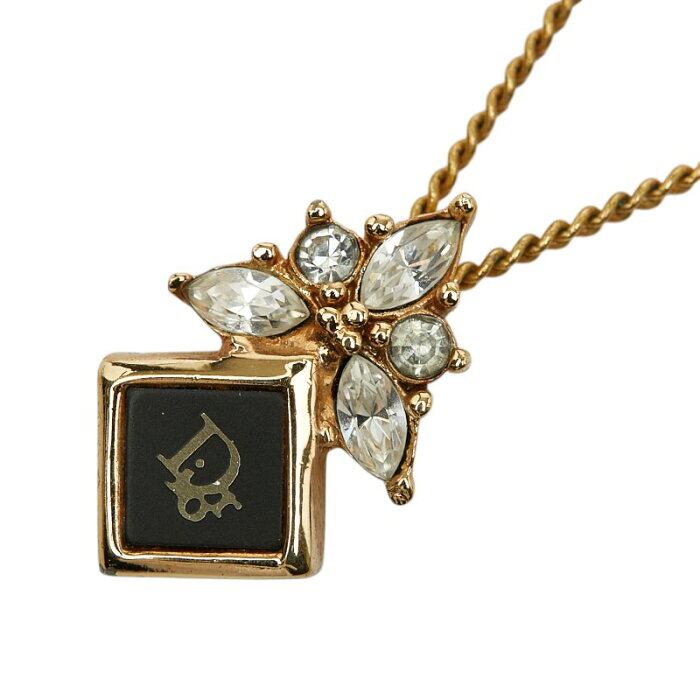 ディオール スクエア ロゴ ペンダント ネックレス ゴールド ブラック メッキ ラインストーン レディース Dior 【中古】
