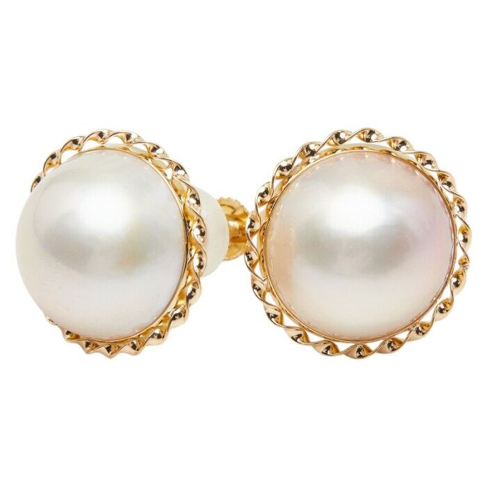 真珠 K18YG イエローゴールド マベパール14mm イヤリング レディース 【中古】
