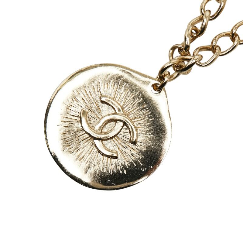 シャネル ココマーク チェーン ペンダントネックレス ゴールド ブラック メッキ レザー レディース CHANEL 【中古】
