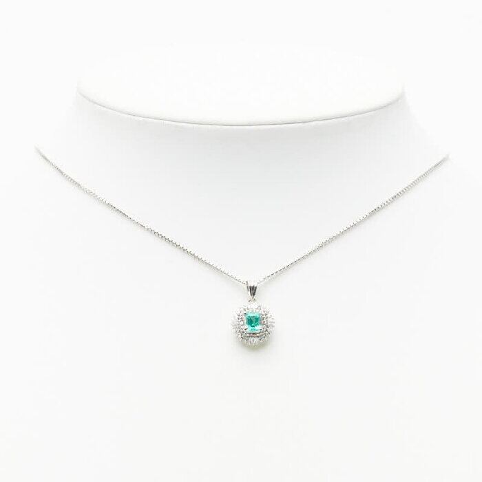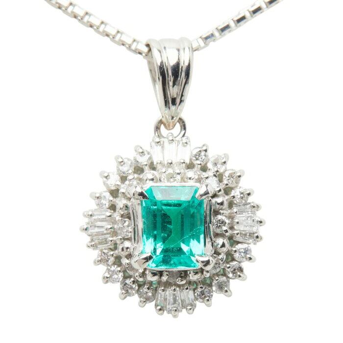 Pt900 プラチナ Pt850 プラチナ エメラルド0.52ct ダイヤ0.28ct ペンダント ネックレス レディース 【中古】