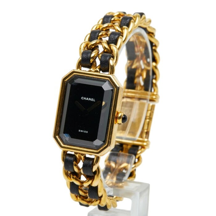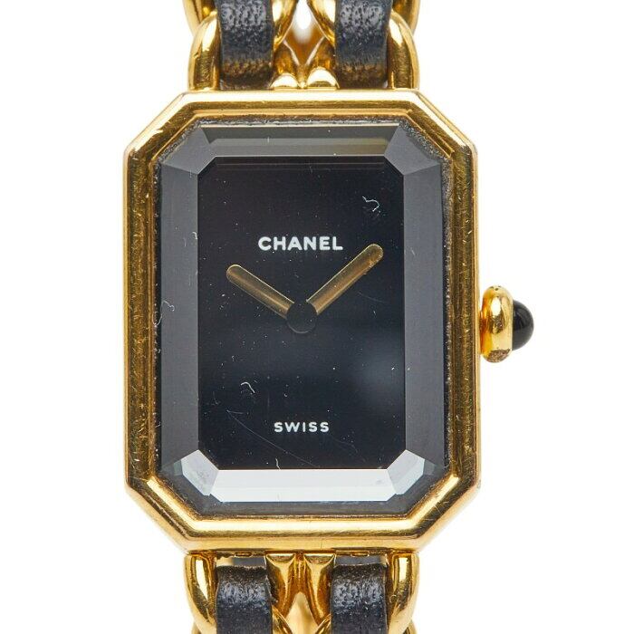 シャネル プルミエール L 腕時計 H0001 クオーツ ブラック文字盤 メッキ レザー レディース CHANEL 【中古】