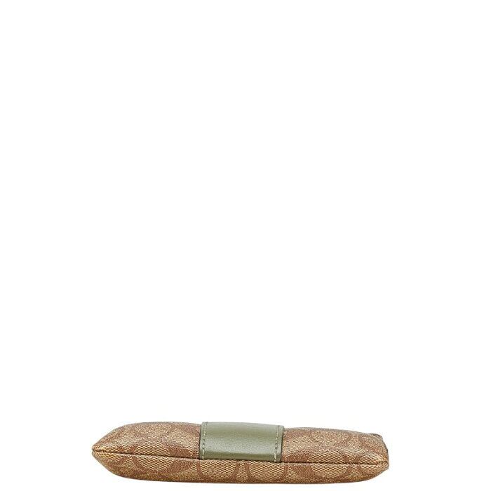 コーチ シグネチャー ポーチ F58035 ブラウン グリーン PVC レザー レディース COACH 【中古】