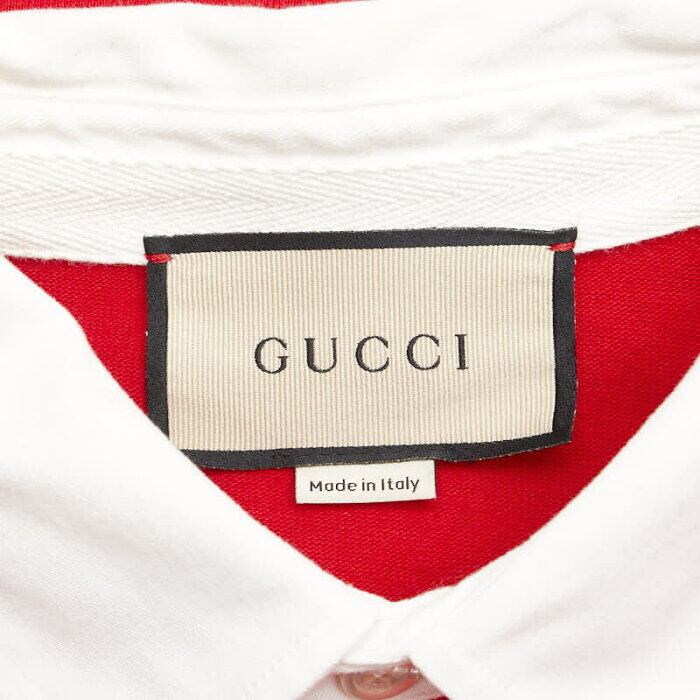 グッチ ボーダー ポロシャツ ラガーシャツ 長袖 サイズ:S 653379 レッド マルチカラー コットン メンズ GUCCI 【中古】