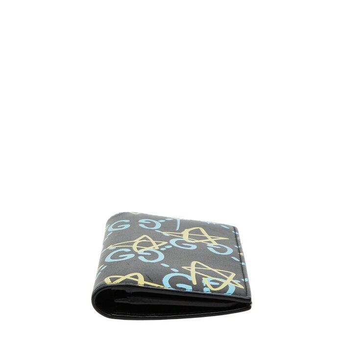 グッチ ゴースト スター プリント 長財布 448466 ブラック ブルー イエロー レザー レディース GUCCI 【中古】
