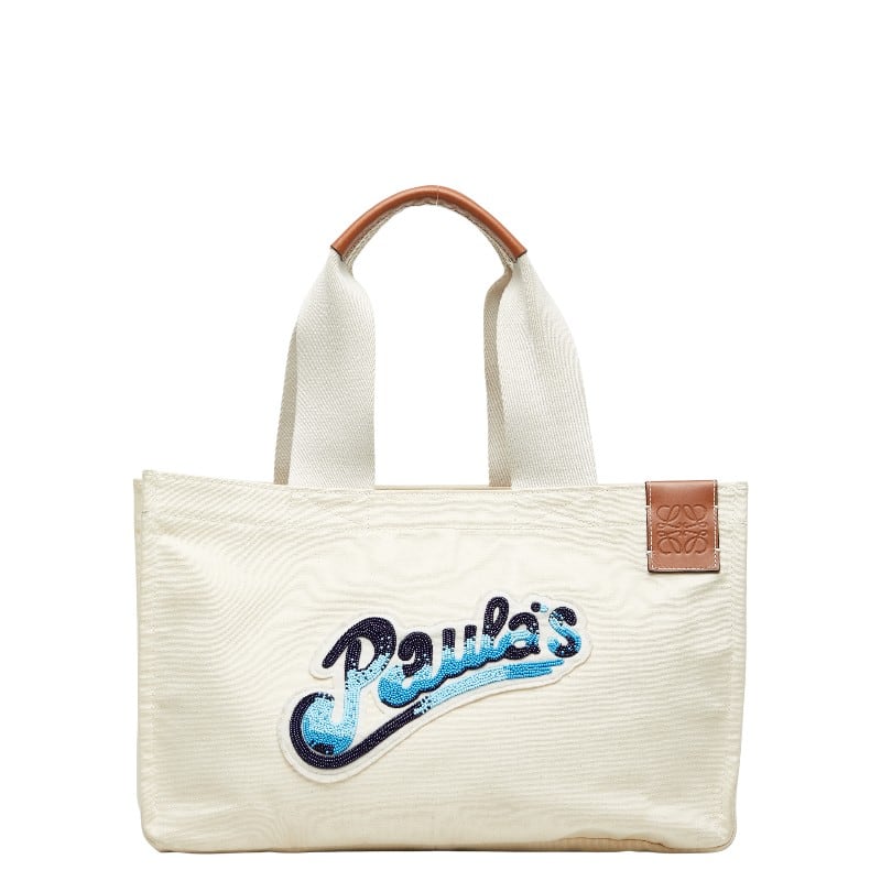 ロエベ Paula’s Ibiza パウラズイビザ カンバス トートバッグ ホワイト アイボリー ブルー キャンバス レディース LOEWE 【中古】
