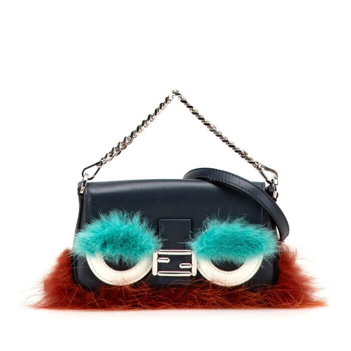 フェンディ バッグバグズ モンスター マイクロバケット ハンドバッグ ショルダーバッグ 2WAY 8M0354 ブラック ブルー レザー ファー レディース FENDI 【中古】