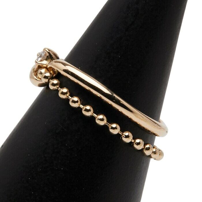 ヨンドシー K18YG イエローゴールド ダイヤ 1P 2連 リング 指輪 レディース 4℃ 7.5号 【中古】