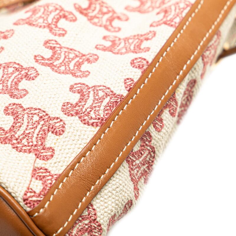 セリーヌ トリオンフ ショルダーバッグ ベージュ レッド ブラウン キャンバス レザー レディース CELINE 【中古】