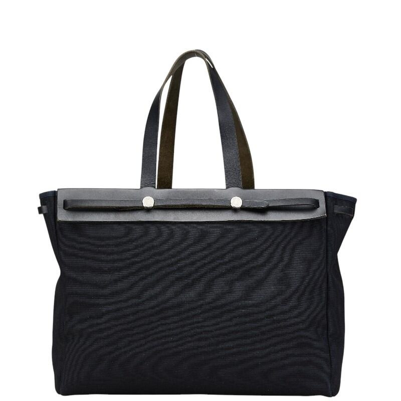 エルメス エールバッグ カバスGM ハンドバッグ トートバッグ ネイビー トワルオフィシエ レザー レディース HERMES 【中古】