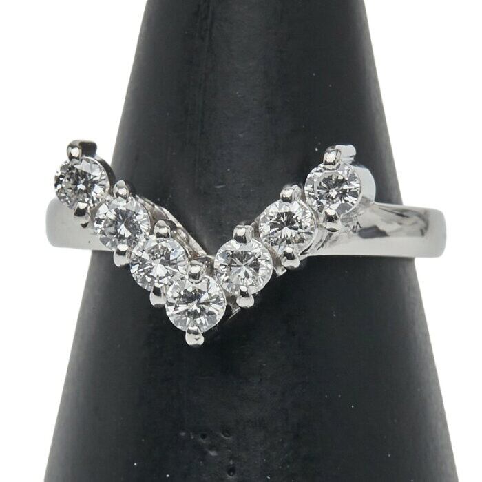 Pt900 プラチナ ダイヤ0.50ct V字 リング 指輪 レディース 11号 【中古】