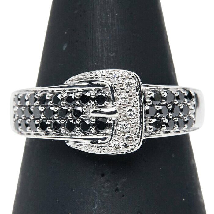 K18WG ホワイトゴールド ダイヤ0.50ct ベルト モチーフ リング 指輪 レディース 13号 【中古】