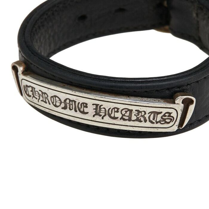 クロムハーツ スクロールラベル ガンスリンガー ブレスレット ブラック シルバー レザー レディース CHROME HEARTS 【中古】