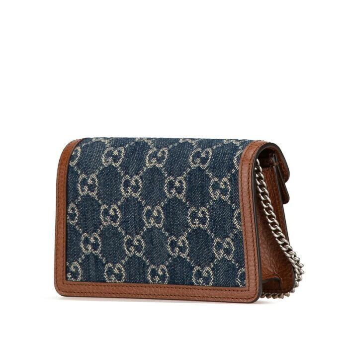 グッチ GGデニム ディオニュソス スーパー ミニバッグ 斜め掛け チェーン ショルダーバッグ 476432 インディゴブルー ブラウン デニム レザー レディース GUCCI 【中古】