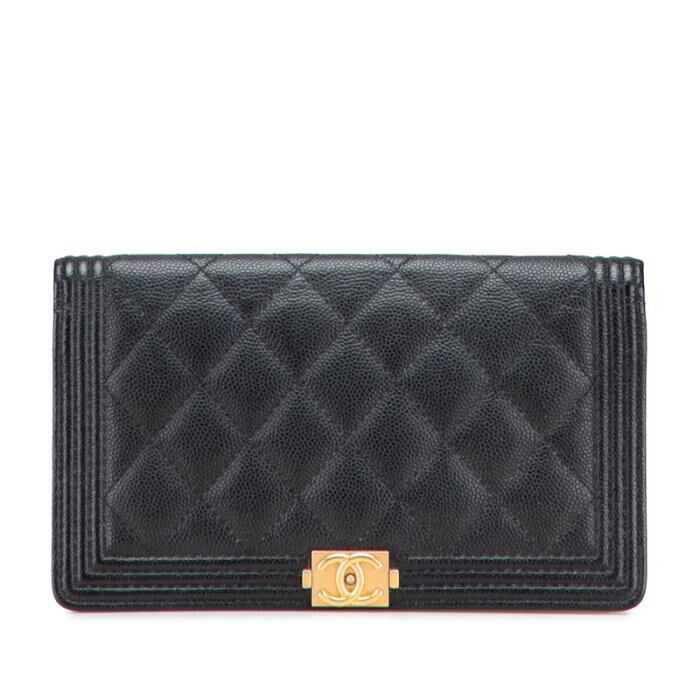 シャネル ボーイシャネル 長財布 ブラック アンティークゴールド金具 キャビアスキン レディース CHANEL 【中古】