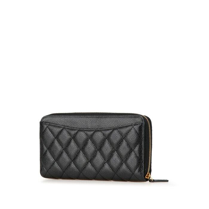シャネル マトラッセ ココマーク ラウンドファスナー 長財布 ブラック キャビアスキン レディース CHANEL 【中古】