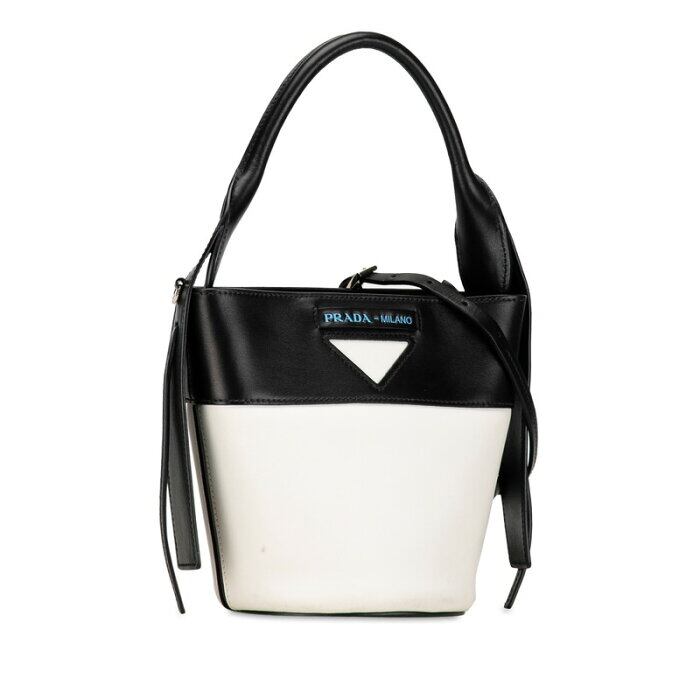 プラダ ウーヴェルチュール ハンドバッグ ショルダーバッグ 2WAY 1BE015 ホワイト ブラック レザー レディース PRADA 【中古】
