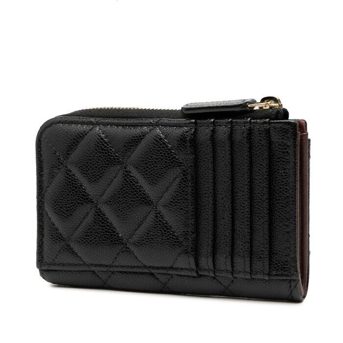 シャネル マトラッセ ココマーク カードケース フラグメントケース ブラック キャビアスキン レディース CHANEL 【中古】