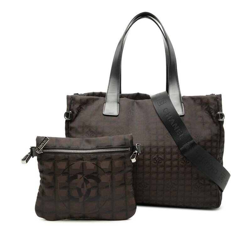 シャネル ニュートラベルライントートMM トートバッグ ショルダーバッグ 2WAY ブラウン ブラック ナイロン レザー レディース CHANEL 【中古】