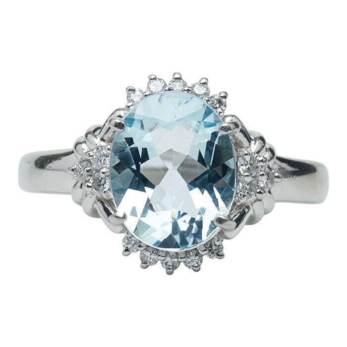 Pt900 プラチナ アクアマリン2.09ct ダイヤ0.18ct リング 指輪 レディース 13.5号 【中古】