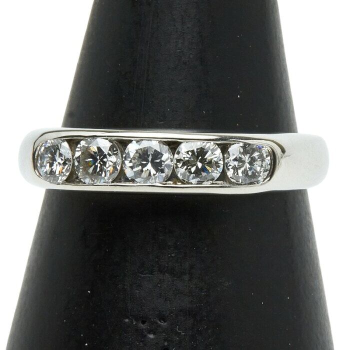 Pt900 プラチナ ダイヤ0.56ct 一文字リング 指輪 レディース 9.5号 【中古】