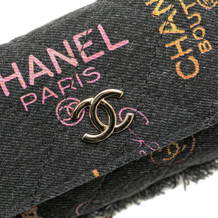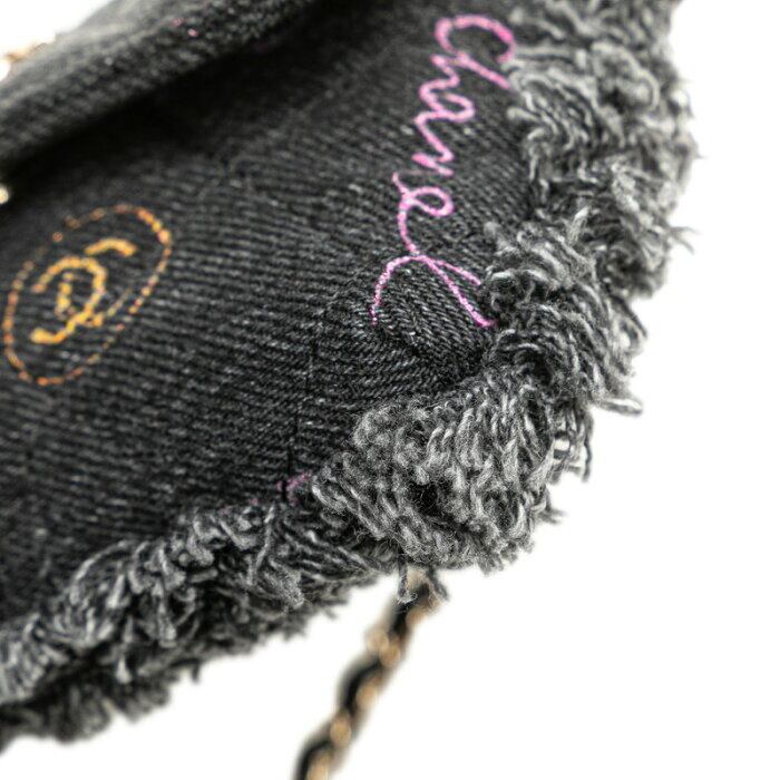 シャネル マトラッセ ココマーク フリンジ 斜め掛け チェーン ショルダーバッグ ポシェット ブラック マルチカラー デニム レザー レディース CHANEL 【中古】